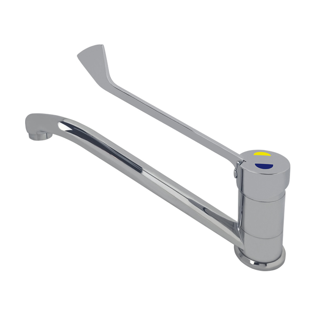 GENTEC NUGEN Single Lever Hob Mounted Sink Mixer Low Line Swivel Spout Lead Free DZR Brass Chrome Plated w/ Laminar Flow 4 Star 7.5 lpm Yellow and Blue Printed Care Handle
