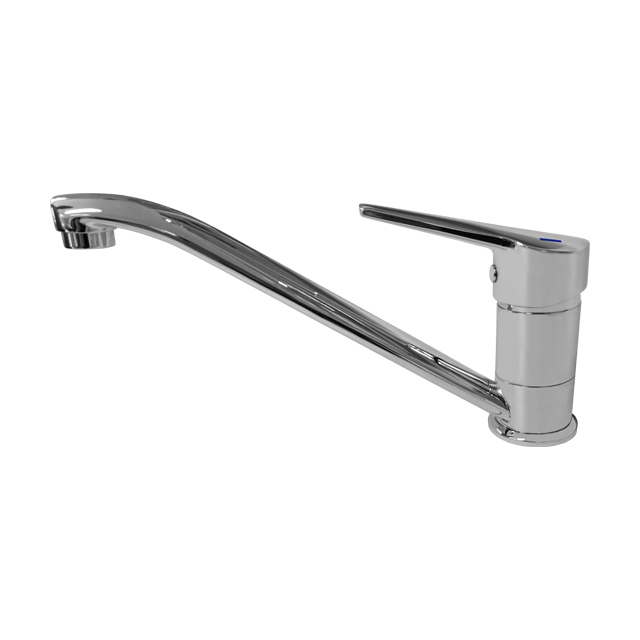 GENTEC NUGEN Single Lever Hob Mounted Sink Mixer Low Line Swivel Spout Lead Free DZR Brass Chrome Plated w/ Laminar Flow 4 Star 7.5 lpm Yellow and Blue Printed Handle